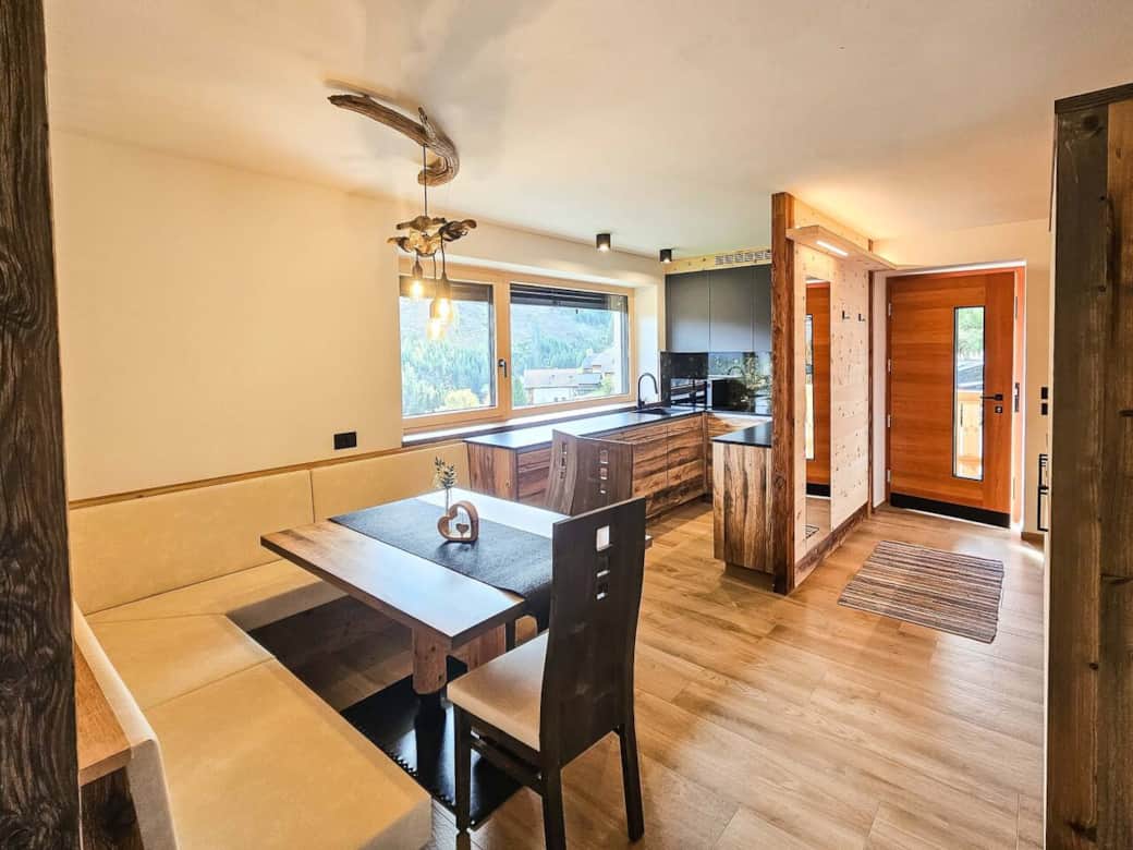 • Natürlicher Duft von Zirben Holz: Viele Möbel und Details in der Wohnung sind aus hochwertigem, heimischen Zirben Holz gefertigt, das nicht nur viel Wärme und Gemütlichkeit ausstrahlt, sondern auch einen angenehmen, beruhigenden Duft in der gesamten Wohnung abgibt.