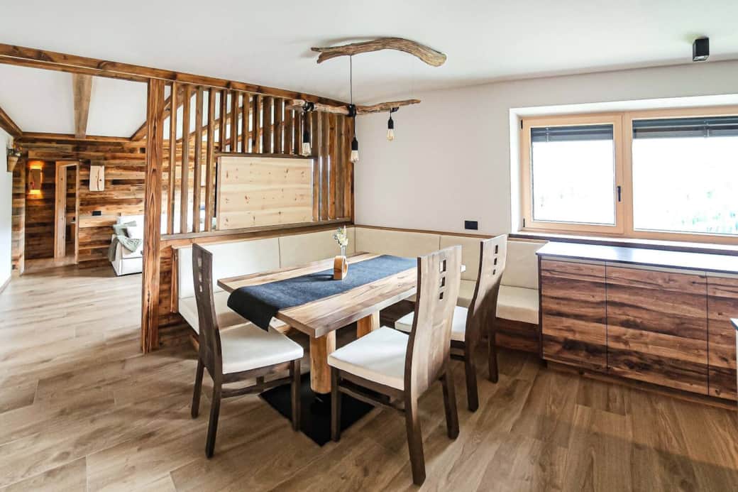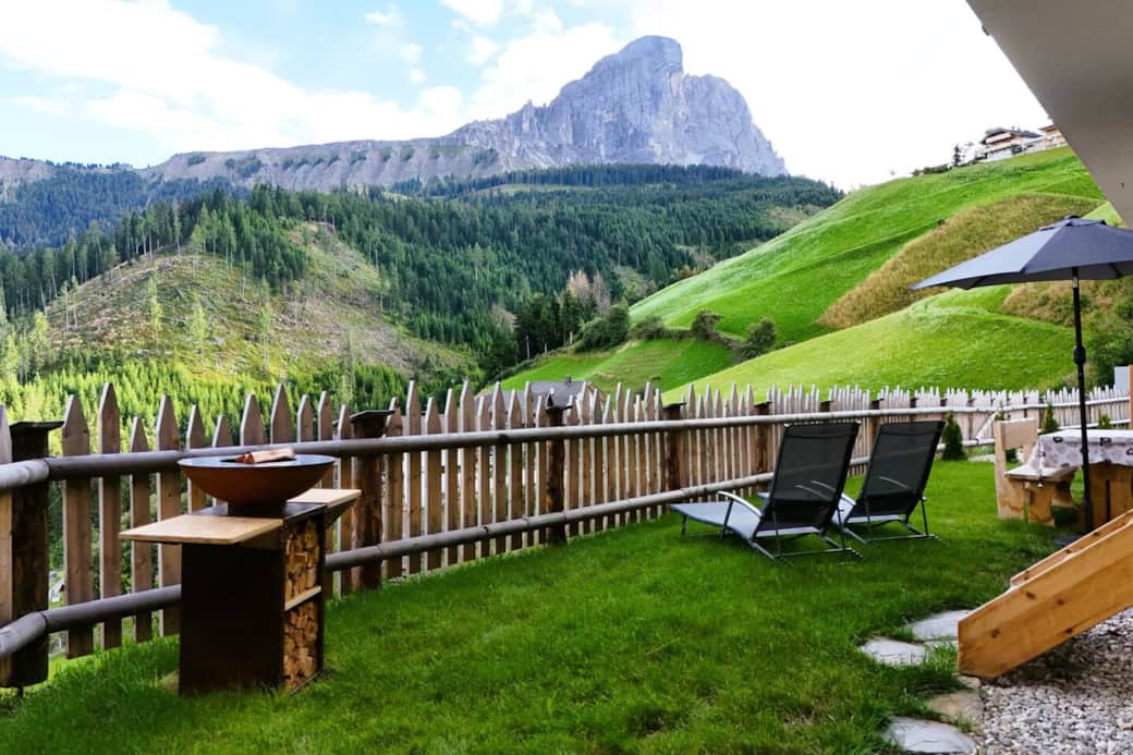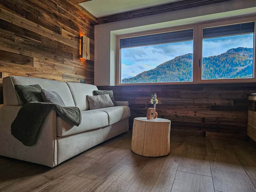 Lassen Sie sich von der gemütlichen Einrichtung und einem herrlichen Blick auf die majestätischen Dolomiten verzaubern.